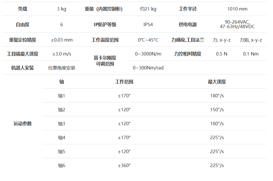 n 支持3D視覺系統、從手機械臂末端六維力傳感器;