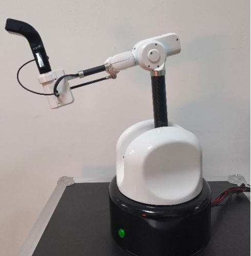 6D力反饋系統, 為一款具有工作空間較大并在所有6自由度上提供力反饋的觸覺設備,接口刷新率最高可達1K赫茲。用戶使用放置在尖端處的夾持器或手柄 (稱為 “末端執行器”) 來握住觸覺裝置。兼容市場主流力反饋公司開發工具包(兼容法國Haption驅動;可選配兼容3dsystems、CHAI3D、Unity);