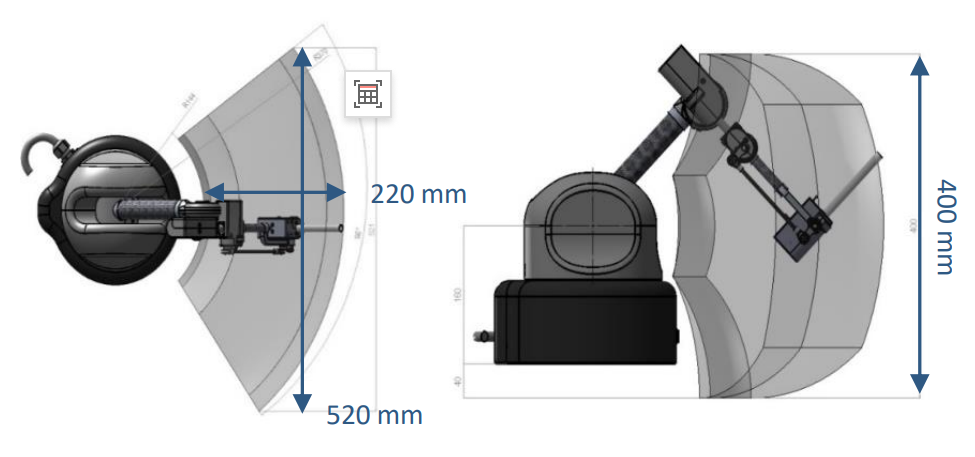 可施加力(工作區的中心):10 N (最大)/ 3 N (持續)