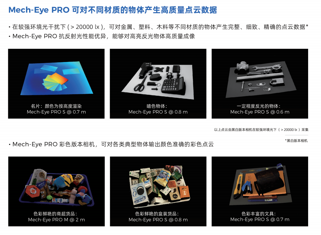 基于先進的視覺算法,可處理各類工件以及紙箱、麻袋、貨品等典型物體,輕松應對隨意堆疊、無序放置、一定程度反光、暗色等復雜工況。
